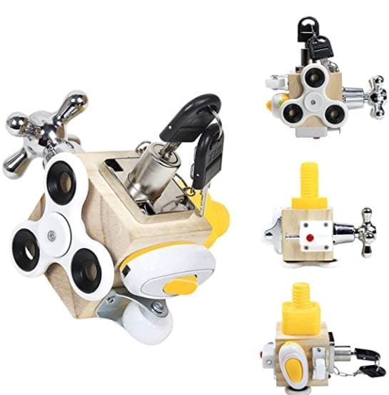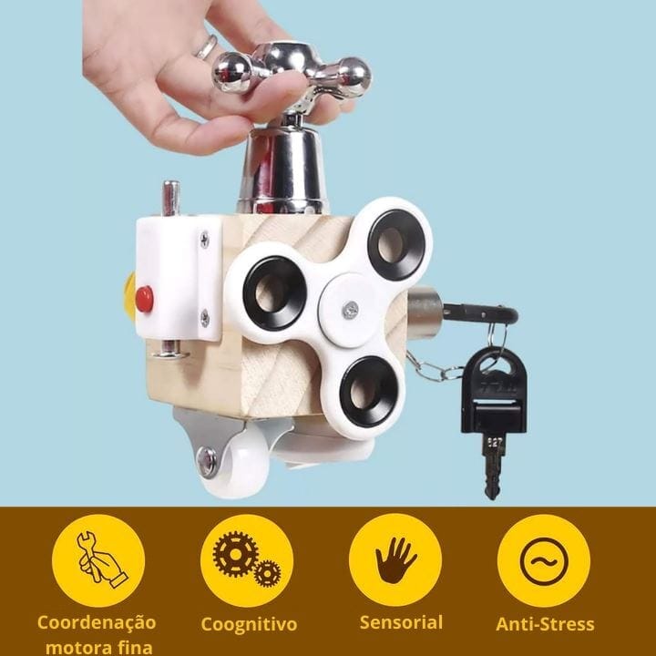 O Fidget Montessori, possui 6 Lados, com 7 atividades diferentes, que podem estimular a criança a desenvolver diversas atividades que certamente irão usar no dia a dia. Tudo está relacionado à vida, aprender habilidades básicas, cultivar o trabalho independente da criança